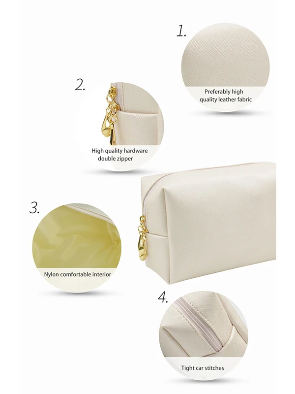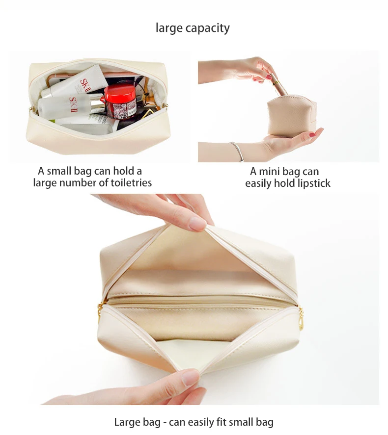 Sac à fermeture éclair personnalisé en cuir PU végétalien pour femmes, sac de maquillage cosmétique de haute qualité