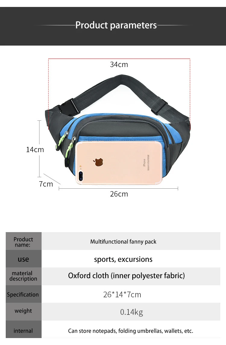 Sac banane de sport multifonctionnel et étanche, sac banane décontracté pour course à pied en plein air